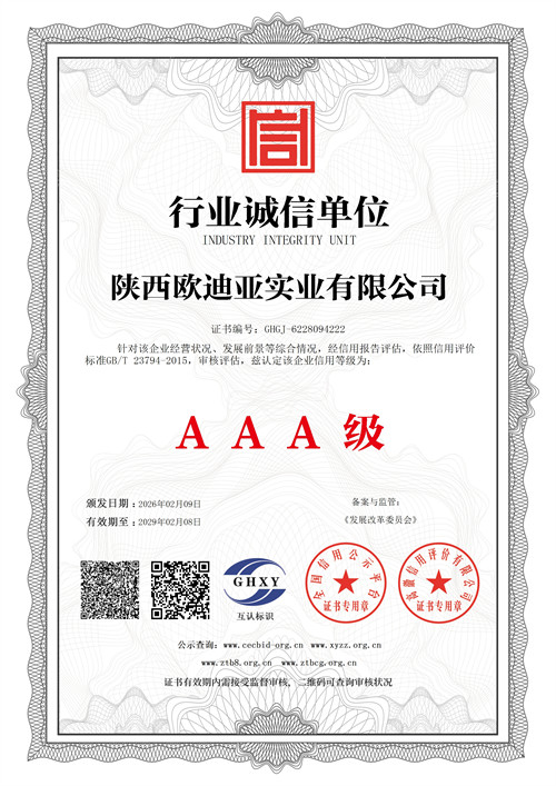陕西欧迪亚实业有限公司关于拟参评第二十六届中国..奖项目的公示
