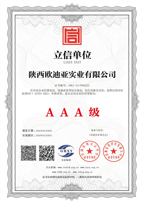 陕西欧迪亚实业有限公司关于拟参评第二十六届中国..奖项目的公示