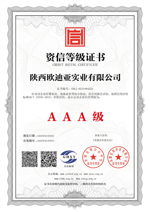 陕西欧迪亚实业有限公司关于拟参评第二十六届中国..奖项目的公示