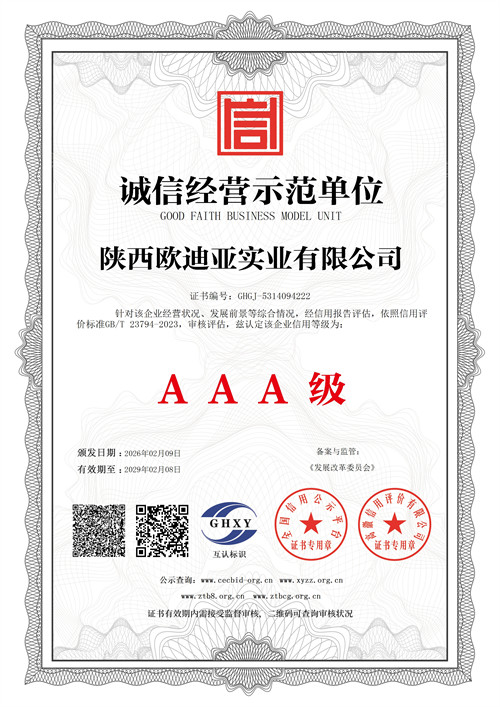 陕西欧迪亚实业有限公司关于拟参评第二十六届中国..奖项目的公示